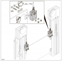 - в случае обрыва троса расположенная на эксцентриковых подшипниках и натянутая с помощью пружины в несущем профиле рамной конструкции поворотная шайба заклинивается; при этом функцию контропоры принимает на себя направляющий элемент подъемных дверей.
