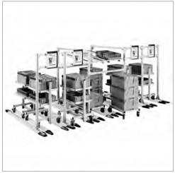 - компоненты для сооружения складских FiFo-станций (работающих по принципу „первым пришел – первым обслужен“) для транспортировочных тележек
