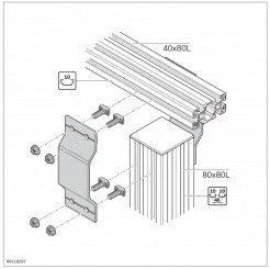 - для соединения профилей под прямым углом на определенном расстоянии, например, для создания выносных опор из профиля 80х80L