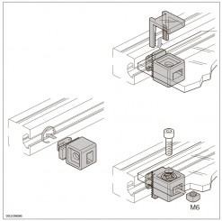 - зажим с помощью фиксатора или посредством резьбового соединения квадратной гайкой М6 (поставляется в комплекте) и винтом